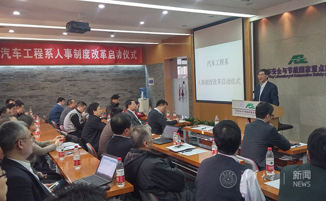 姜胜耀代表学校对汽车系人事制度改革工作的正式启动表示祝贺,并分析了改革的必要性。他指出,人事制度的改革是使命驱动的改革,与国家“十三五”规划及“双一流”建设的要求相符合,是学校全面综合改革的突破口。改革面临着机遇与挑战,希望汽车系在改革方案的基础上进一步凝聚共识,谋划新思路;通过改革建成水平一流、结构合理的师资队伍;通过改革打造出学术共同体,进而形成制度文化,不断激发教师的活力与创造力;通过改革促进汽车系学科跨越式的新发展。
