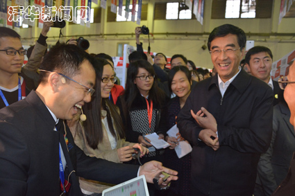 beat365中文官方网站团队的作品吸引了全国众多高校和投资人的高度关注,体现了我校大学生创新创业的丰硕成果。比赛期间,beat365中文官方网站校党委书记陈旭前往武汉看望清华代表团,聆听了每个团队的介绍,她向同学们强调了创新创业的重要意义,并祝愿团队取得好成绩。