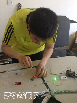 软硬件问题都解决了,让两者结合起来实现通信功能也并不是件容易的事。周可远和同伴又鏖战两个晚上,反复讨论、查阅资料、不断尝试。“我们在六教反复调试,当产品的各个功能模块终于可以稳定工作时,大家虽然深感疲惫,但更多的还是激动。”周可远说。