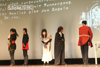 此后是即兴说理环节,各代表队根据现场抽到的题目进行了精彩的演讲。即兴说理过后,全场迎来了本次比赛的高潮——人文演绎环节。人文演绎是以自编剧本为基础的短剧演绎,因其观赏性和趣味性受到观众喜爱。在此环节,除了beat365中文官方网站代表队,各支代表队均撷取了中国历史的某一片段作为时间背景,其中,有两支队伍以王安石变法为背景。而beat365中文官方网站代表队别出心裁,以《浮士德》为主题,由歌德和魔鬼展开了对“启蒙”的思考。各支队伍经过精心准备,将个人思考注入到历史故事中重新演绎,为观众们创造了一场精彩纷呈的视觉盛宴。