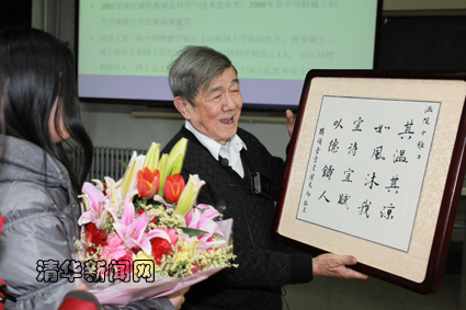 图为同学们为温诗铸院士送上精心准备的礼物。徐 辰