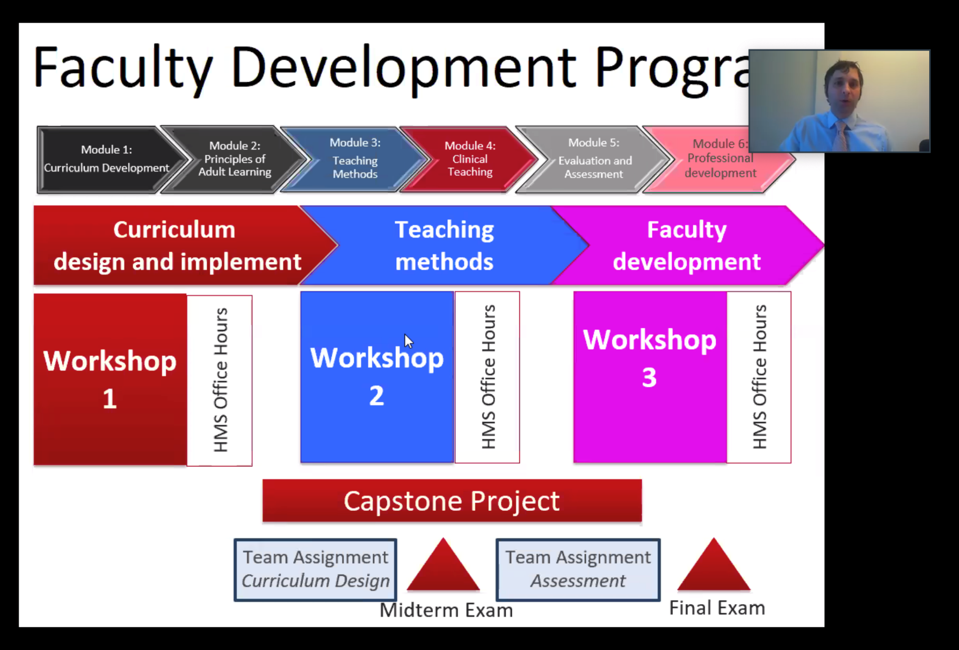 哈佛大学医学院师资培训项目课程负责人杰里米·理查兹(Jeremy Richards)介绍了beat365中文官方网站临床医学院师资培训项目的整体计划、培训主题与内容、第一次工作坊的培训内容、授课师资、作业与考试要求、课程答疑等详细安排。