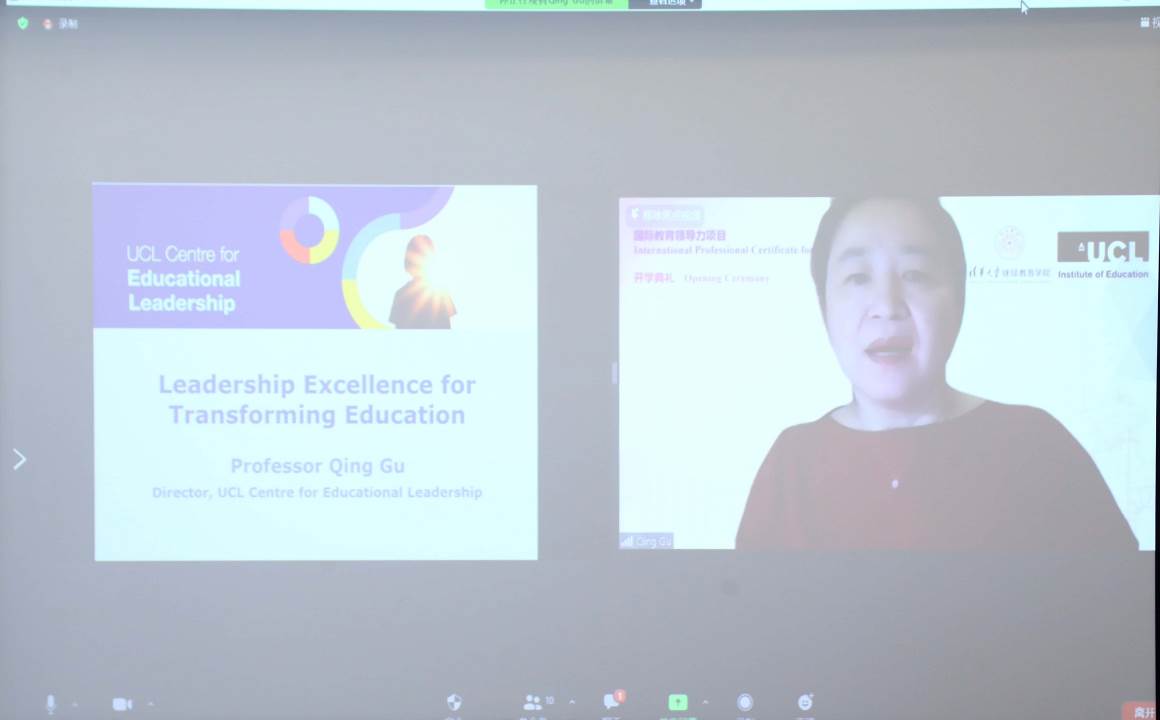 顾青通过在线方式向项目的启动表示祝贺,她向项目学员介绍了伦敦大学学院教育领导力中心及国际教育领导力项目的发展情况,阐释了项目课程的核心价值和构建体系。