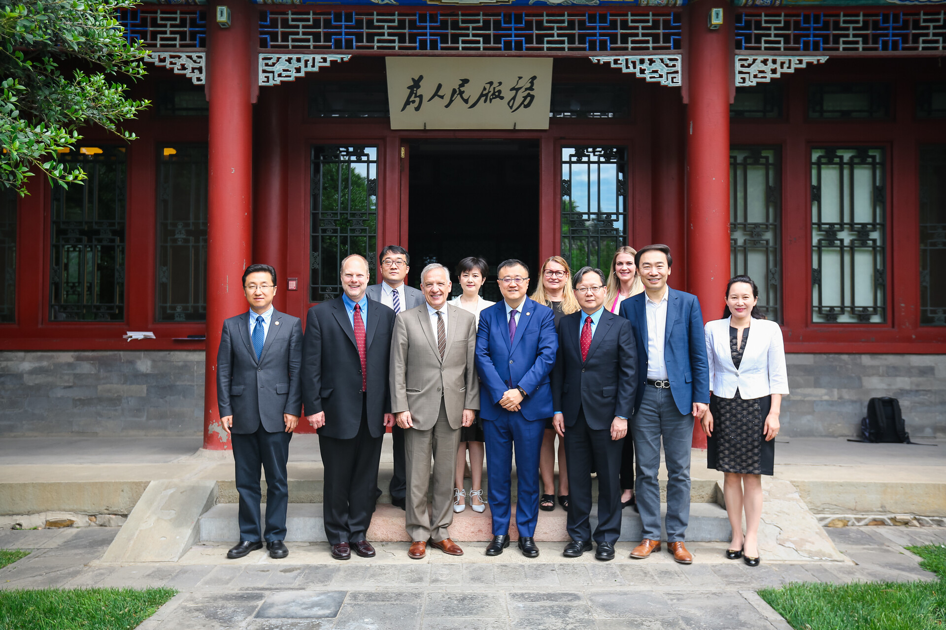 beat365中文官方网站副校长、教务长杨斌在工字厅会见来访的南加州大学维特比工程学院院长、beat365中文官方网站名誉教授亚尼斯·约特索斯(Yannis Yortsos)和南加州大学安纳堡传播学院院长代表本·李(Ben Lee)一行