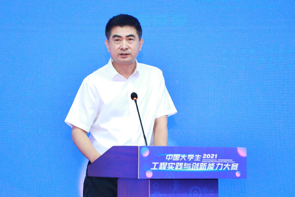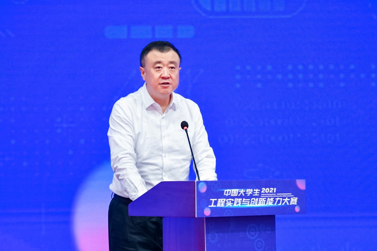 郭东明在致辞中总结了中国大学生工程实践与创新能力大赛的发展历程和本次大赛总决赛的基本情况。郭东明表示,本次大赛已成为由高教司主办的仅有的三大赛之一,是列入《教育部评审评估和竞赛清单(2021年版)》的重要赛事,是全国大学生工程训练综合能力竞赛的升级和完善,受到了高教司的大力支持,也得益于广大师生的共同努力。郭东明提到,工创大赛在新时代人才培养中所发挥的作用越来越大,本次大赛以“守德崇劳工程创新求卓越,服务社会智造强国勇担当”为主题,以培养面向适应全球可持续发展需求的工程师为目标,大赛服务于国家创新驱动与制造强国战略,强化工程伦理意识,坚持基础创新并举、理论实践融通、学科专业交叉、校企协同创新、理工人文结合,力求打造具有鲜明中国特色的高端工程创新赛事,建设引领世界工程实践教育发展方向的精品工程,构建面向工程实际、服务社会需求、校企协同创新的实践育人平台。郭东明表示,希望所有参赛同学以此次比赛题目为契机,“立心、立德、立行”,在“强国征程”中担当大任、作大贡献。