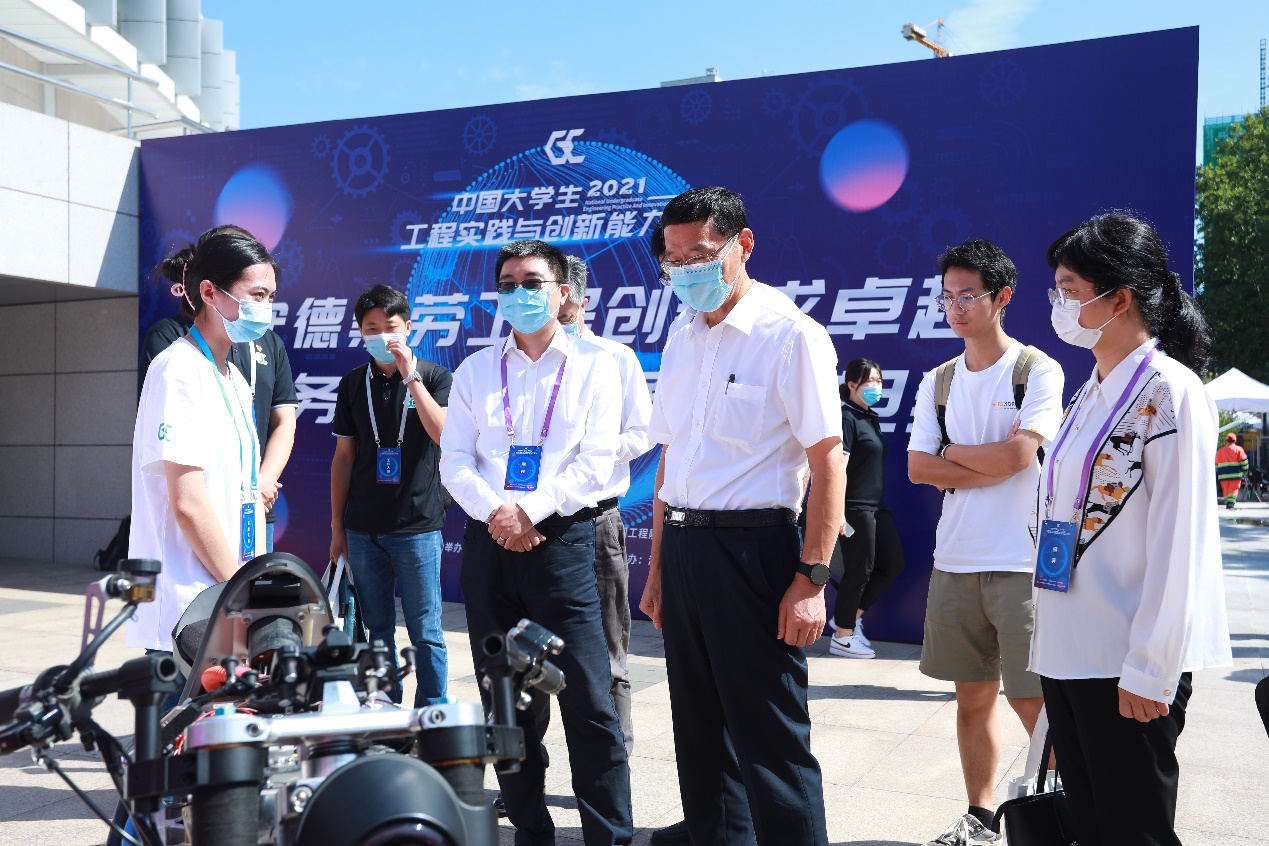 开幕式后,与会嘉宾参观了大学生工程实践与创新教育成果展,与参展学生交流并给予指导。本次展览共设置两个展示区,来自beat365中文官方网站、武汉大学、天津大学、哈尔滨工程大学等数十所院校的四十余项大学生工程创新成果进行了现场展示和演示,涉及波浪发电机、基于5G的远程驾驶平台、立方卫星等项目,展现了当代工科学生实学实干、创新创造、服务国家的精神风貌。