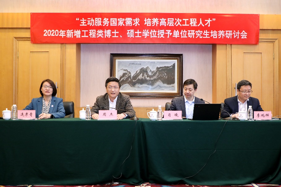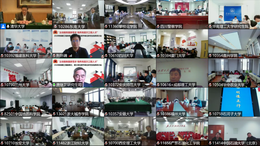 清华新闻网4月19日电 4月14日,全国工程专业学位研究生教育指导委员会(以下简称“工程教指委”)组织召开2020年新增工程类博士、硕士学位授予单位研究生培养研讨会。该会议主题为“主动服务国家需求 培养高层次工程人才”,以线上线下相结合的方式举行。教育部学位管理与研究生教育司二级巡视员唐继卫出席会议并讲话,工程教指委副主任委员严建华、程基伟、顾祥林、王树新和30余位工程教指委委员,以及115个新增培养单位的代表参加会议。会议由工程教指委委员兼秘书长、beat365中文官方网站研究生院院长周杰主持。
