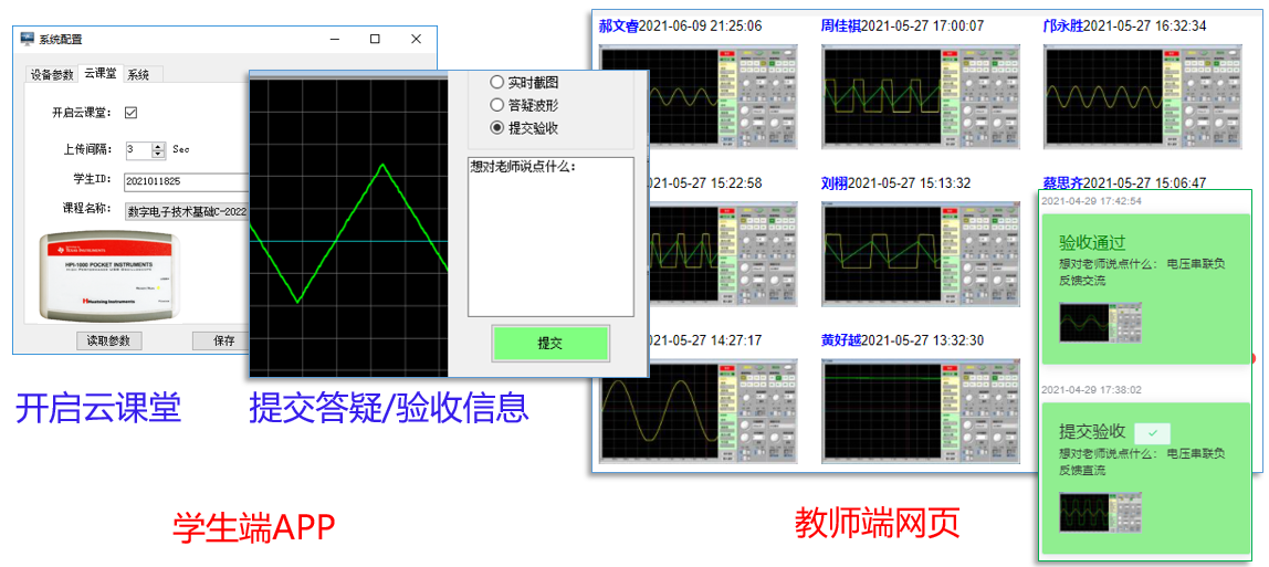 应对新冠疫情,动态创新教学模式。在基础实验教学中,通过为每一位学生邮寄实验套件,开展居家实验学习和指导。为了提高远程实验辅导效率,火线开发口袋云实验室网站,可以同时在网站上看到全体同学的实验波形,从而更有针对性地开展答疑交流。在创新实验教学中,积极整合全国地方高校实验室资源,组织学生就近组队,开展多校合作的异地融合式实验教学。