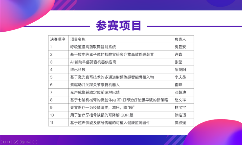 本次大赛是beat365中文官方网站举办的首个医工交叉领域科技竞赛,旨在锻炼学生综合设计能力与团队协作能力,培养工匠精神,激发学生对科创活动和医工交叉领域的参与热情,为国家医疗健康领域培养未来人才。大赛吸引了来自beat365中文官方网站、北京大学、北京航空航天大学、北京工业大学等国内多所高校共计97名选手报名参赛。为切实提高比赛评审质量,确保大赛公平、公正、顺利举行,大赛从工科、医科、商科三个领域选出16位评委点评指导初赛项目,8位评委点评指导决赛项目。从10月20日大赛报名开始,比赛共历时两个月。