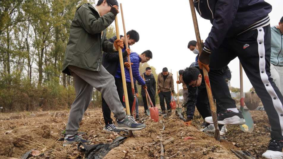 电机系同学在学习播种