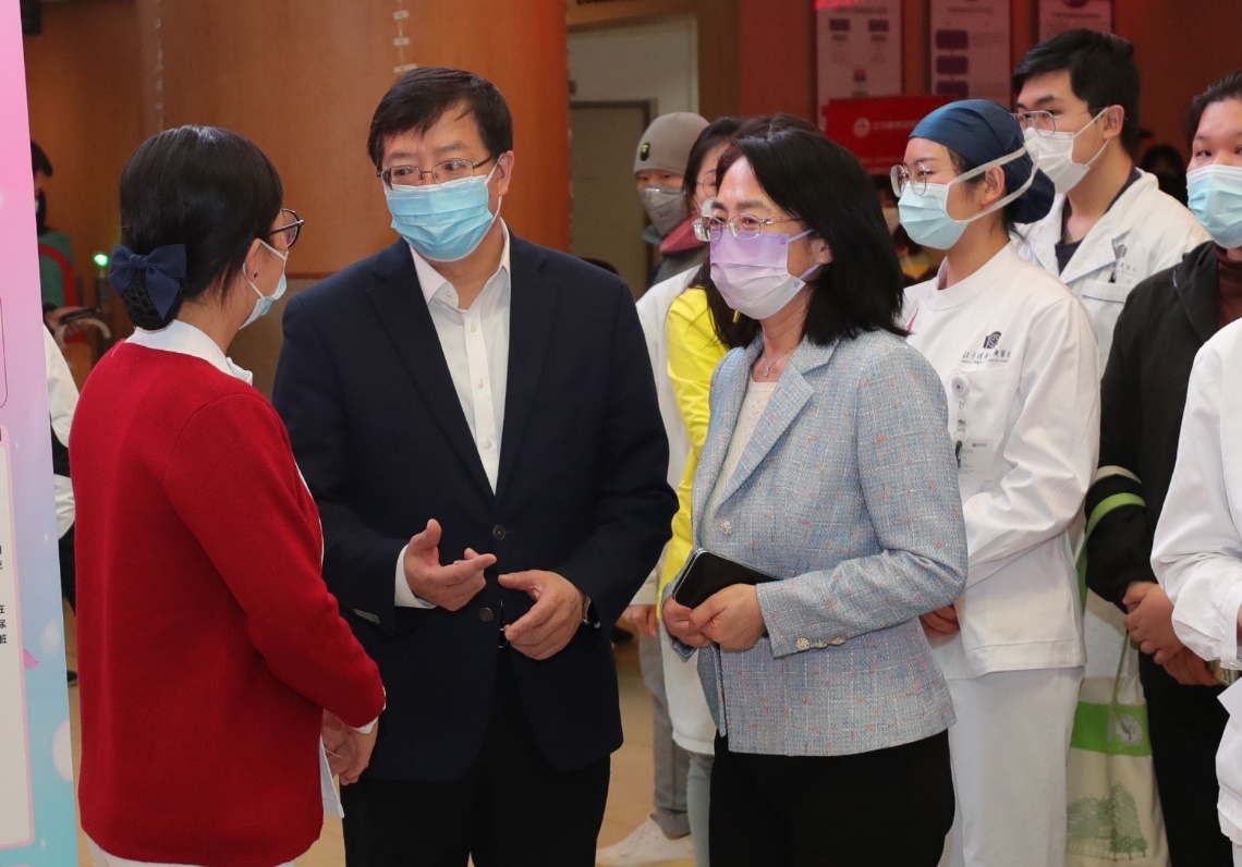 在北京清华长庚医院一层门诊大厅,妇产科团队正组织多名医师开展“三八”国际劳动妇女节健康义诊活动。邱勇来到大家身边,仔细询问活动开展情况,并向在场的女医护工作者致以节日的美好问候。邱勇表示,三年多来,广大女医护人员在疫情防控工作中承担了重要的责任和使命,大家秉持医者仁心,用自己的专业技能和坚定意志,为病患提供了最优质的护理和治疗,彰显了女性的坚韧与勇气,为守护清华师生员工和广大群众的生命健康作出重要贡献。