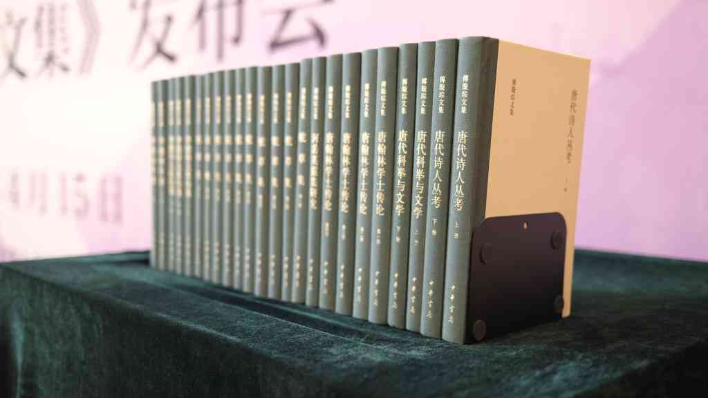 在参会嘉宾的共同见证下,彭刚、俞国林以及与会代表中最年长和最年轻的吴在庆、杨朗共同为《傅璇琮文集》揭幕。