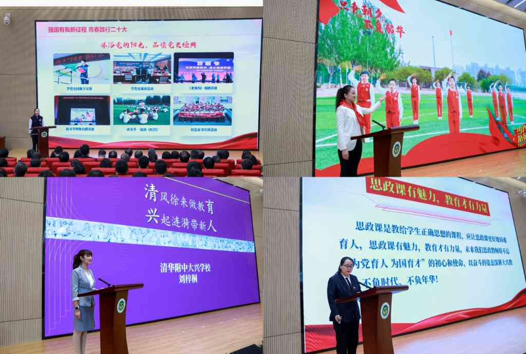 大兴一中团员学生党火清、旧宫实验学校大队辅导员白悦、新源学校团委书记刘梓桐、首都师范大学附中大兴南校区思政教师王倩围绕“强国有我新征程 青春献礼二十大”主题,分享了自己将思政小课堂融入志愿行动中、融入少先队培养中、融入中学团员发展中以及和党的理论有机结合的经历,展现了思政课在青少年人生道路启航和发展上的重要价值。