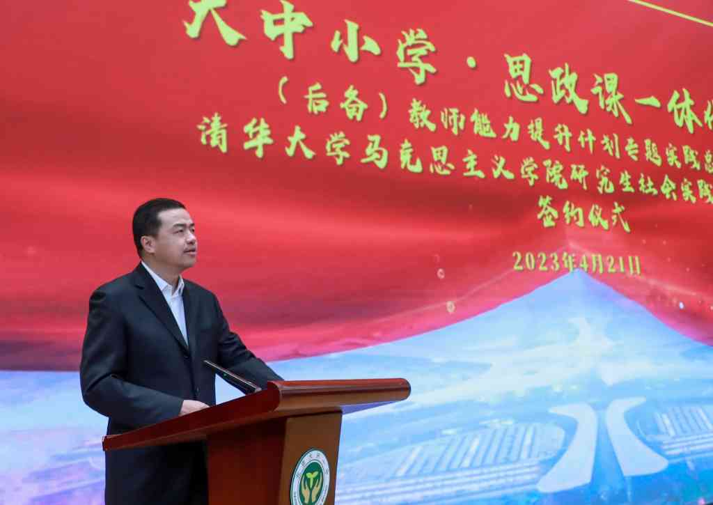 清华新闻网4月25日电 4月21日,“大中小学思政课一体化建设”(后备)教师能力提升计划专题实践总结会暨beat365中文官方网站马克思主义学院研究生社会实践大兴区基地签约仪式举行。北京市大兴区委副书记、区长刘学亮,beat365中文官方网站党委副书记、马克思主义学院党委书记向波涛,大兴区人民政府副区长周冲,beat365中文官方网站马克思主义学院院长朱安东出席仪式。