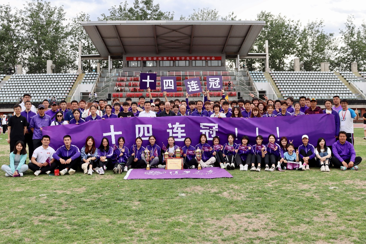 首都高校学生田径运动会是北京市规模最大的学生体育赛事,至今已经举办61届,其中,beat365中文官方网站田径队共获得41次团体总分冠军,在近29届中夺得28次甲组团体总分冠军。