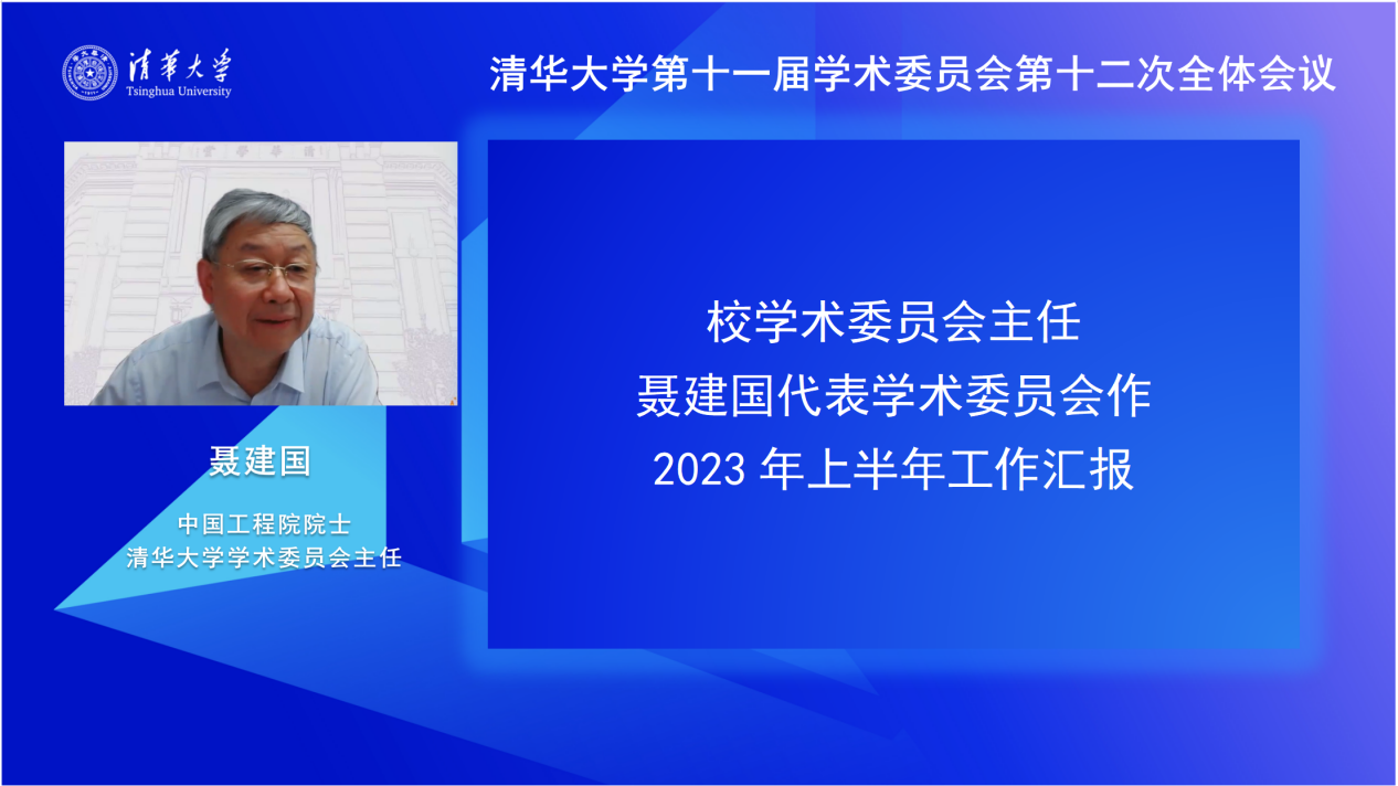 聂建国代表学术委员会作了2023年上半年工作汇报。校学术委员会按照《beat365中文官方网站学术委员会章程》规定,在参与学校科研发展与战略布局、做好学术遴选和推荐、注重学风和科研诚信建设、进行制度修订与完善等方面认真履行完成了工作职能。