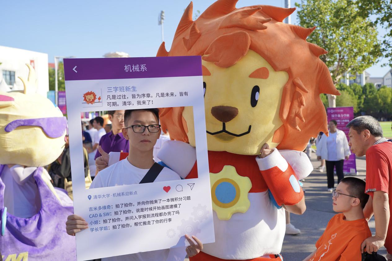 在学长学姐亲切的引领与介绍中,同学们热闹而有序地完成了一系列开学报到手续。与可爱的院系吉祥物互动、在有趣的镂空合影板前“打卡”、欣赏活力满满的巡游演出……各式各样精心设置的迎新活动,令旅途的疲惫一扫而空,笑容洋溢在了每一位新清华人的脸上。