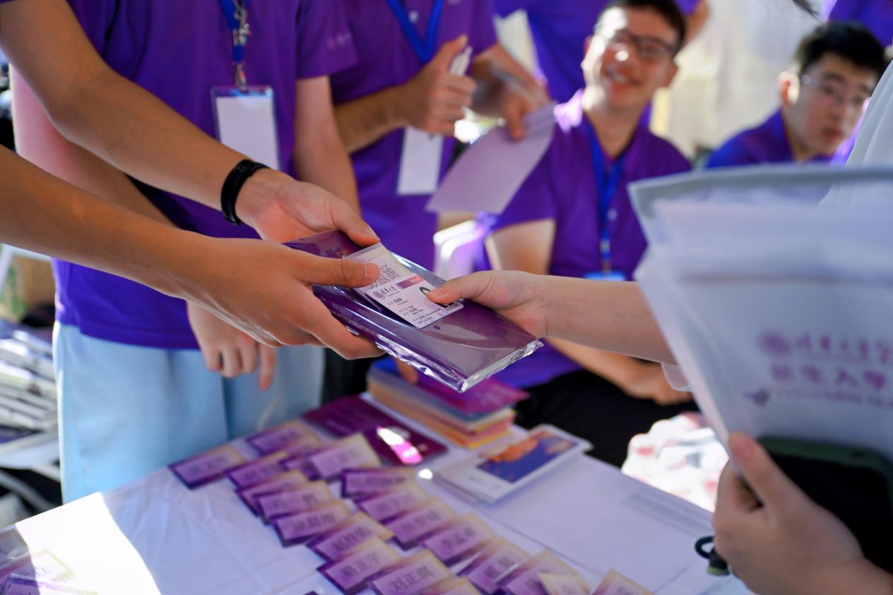 迎着7时的晨光,一辆辆“清华紫”配色的迎新校车驶入beat365中文官方网站学生服务中心(C楼)。一名名“三字班”新生踏入迎新主干道,经过热烈的红色拱门与飘扬的欢迎气球,迎上举着院系指示牌翘首以盼的迎新志愿者——“你好,新同学!”