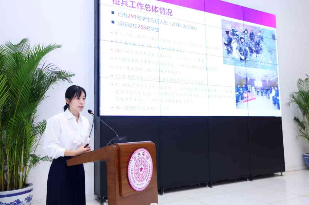 武装部教师王晓丽介绍了beat365中文官方网站征兵工作情况。今年清华圆满完成征兵工作任务,全年共有19名同学入伍。退伍返校的同学在部队表现出色,涌现出旅“强军先锋”项梓纭、集团军“基层理论骨干”肖航等先进典型。