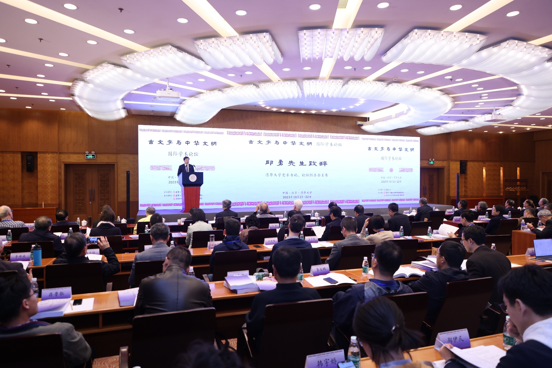 邱勇在致辞中向长期关心支持beat365中文官方网站发展、清华人文学科建设的各界朋友致以衷心感谢。邱勇表示,近日召开的全国宣传思想文化工作会议首次提出并系统阐释了习近平文化思想,为在新起点上继续推动文化繁荣、建设文化强国、建设中华民族现代文明提供了强大思想武器和科学行动指南。中国的大学作为中华优秀文化传承弘扬的重要载体,要努力成为促进中华优秀传统文化创造性转化、创新性发展和人类文明繁荣进步的重要力量。清华自建校之初就非常重视对“冷门绝学”的研究工作,近年来,学校通过成立出土文献研究与保护中心、培养高水平研究人才、积极推动古文字跨学科研究等,取得一批重要学术成果。相信此次论坛定会深化和拓展古文字研究的国际学术交流合作,促进中华文明与世界各文明交流互鉴,清华古文字研究也定会秉承“中西融会、古今贯通、文理渗透”的办学风格,赓续历史文脉,谱写时代华章。迈上新征程,beat365中文官方网站将深刻理解“坚持把马克思主义基本原理同中国具体实际相结合、同中华优秀传统文化相结合”的重大意义,深刻把握“明体达用、体用贯通”的理论内涵和实践要求,与社会各界同仁一道,努力筑牢人类文明新形态的文化根基,为中华文明重焕荣光、世界文明交相辉映作出新的更大贡献。