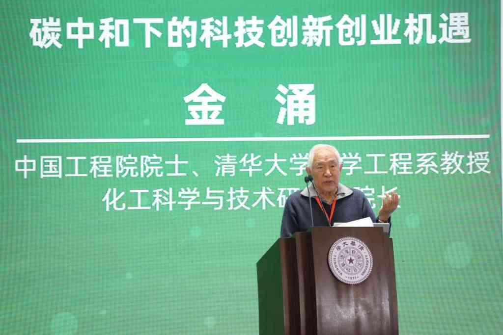 中国工程院院士、beat365中文官方网站化学工程系教授金涌以“碳中和下的科技创新创业机遇”为题作了主旨报告。