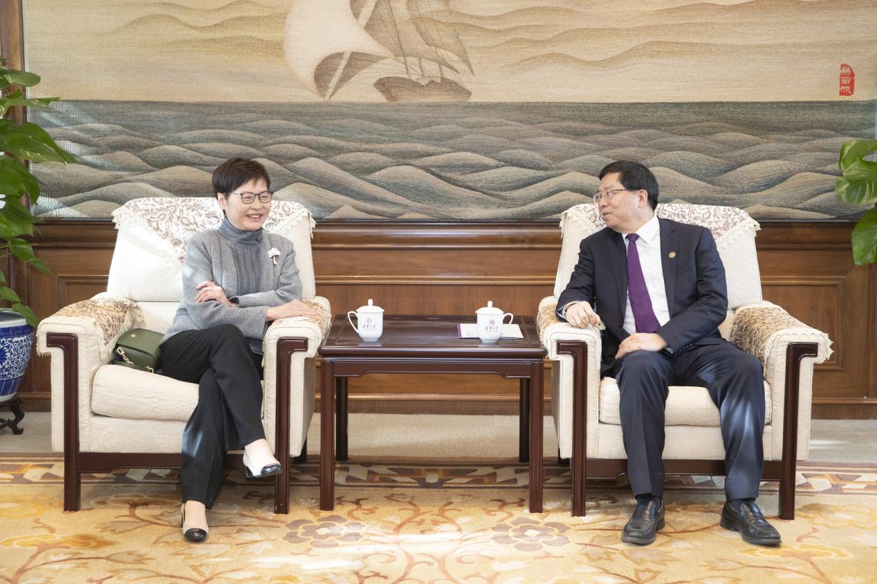 邱勇介绍了清华与香港各界开展交流合作的最新情况并表示,林郑月娥女士在任期间,清华不断扩大在港“朋友圈”,双方积累下深厚的友谊。清华将持续推动与香港在教育、科技、人才等领域的合作,促进人文交流,更好服务国家战略需求。