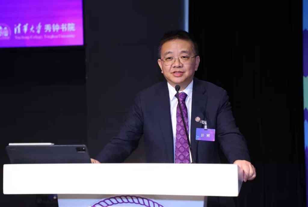 秀钟三字班学生陈熠辉、曾思仪主持会议报告环节。秀钟书院导师、环境学院副院长、教授徐明作题为“生成式人工智能及其在可持续发展领域的潜在应用”的特邀报告。