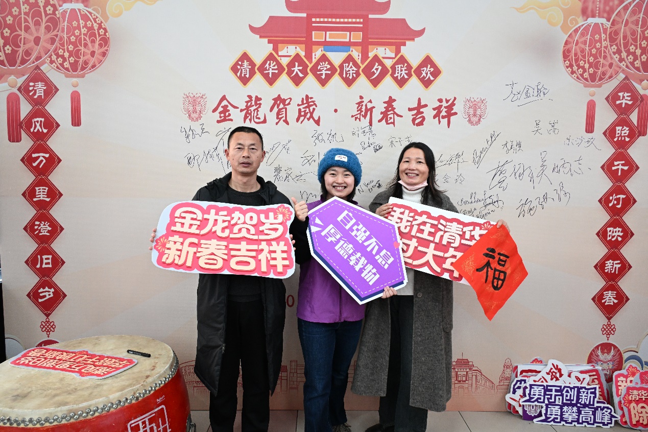 新闻21班的罗弋翔同学今年把父母接到北京来过年,她作为志愿者参与了联欢活动的组织和协调工作,也带着父母一起来到现场感受清华不一样的年味儿。她笑着说:“今天的联欢年味儿特别多,能够亲身参与这样的活动很开心。”