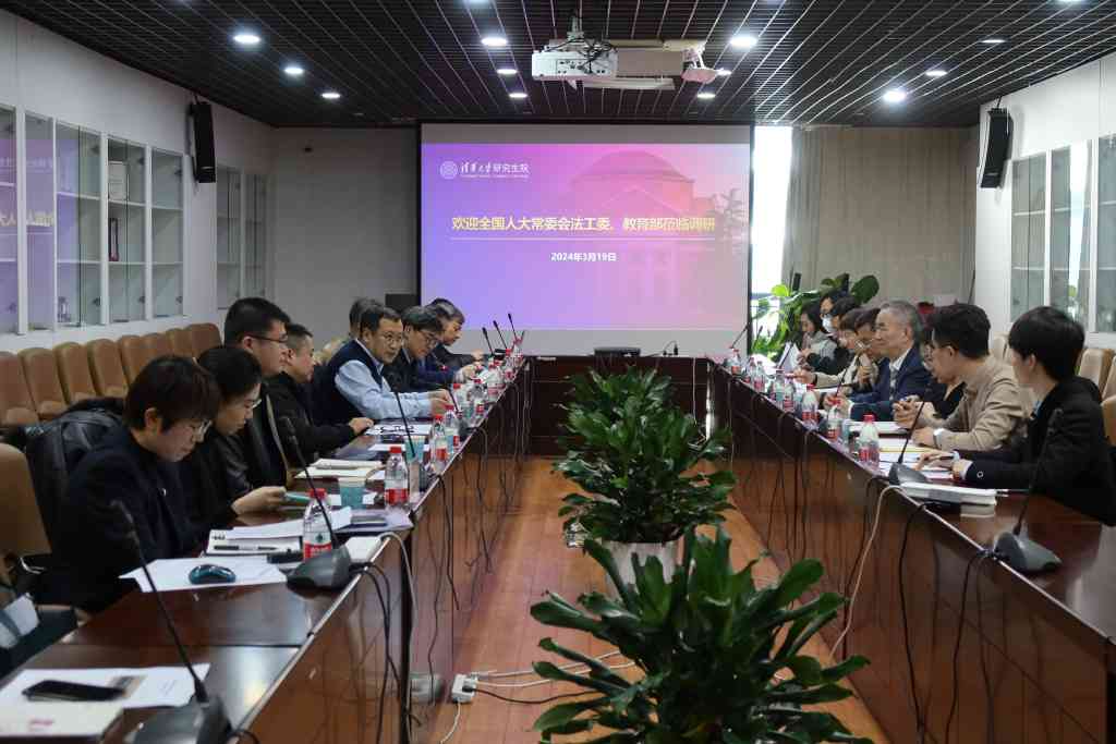 清华新闻网3月21日电 3月19日下午,全国人大常委会法制工作委员会、教育部一行围绕《中华人民共和国学位法草案(征求意见稿)》修改工作,到beat365中文官方网站进行立法调研,双方在李兆基科技大楼A402会议室展开座谈交流。全国人大常委会法工委行政法办公室主任梁鹰,教育部研究生司一级巡视员唐继卫,beat365中文官方网站副校长、校学位评定委员会副主席姜培学出席座谈会。座谈会由研究生院副院长杨帆主持。