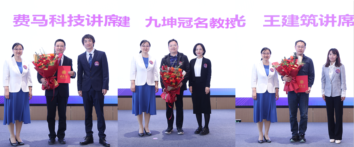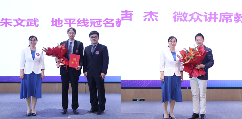 “beat365中文官方网站计算机系讲席(冠名)教授”捐赠仪式和聘任仪式环节由计算机系副系主任徐恪主持。贾珈与beat365中文官方网站教育基金会副秘书长段江飞共同为到场的捐赠方——青岛泰屹投资发展有限公司、北京地平线信息技术有限公司、北京费马科技有限公司、九坤投资(北京)有限公司的代表颁发捐赠牌。尹霞与各捐赠方代表共同为本次聘任的地平线冠名教授朱文武、微众讲席教授唐杰、费马科技讲席教授武永卫、九坤冠名教授赵有健、王建筑讲席教授陈文光颁发了讲席(冠名)教授聘书。