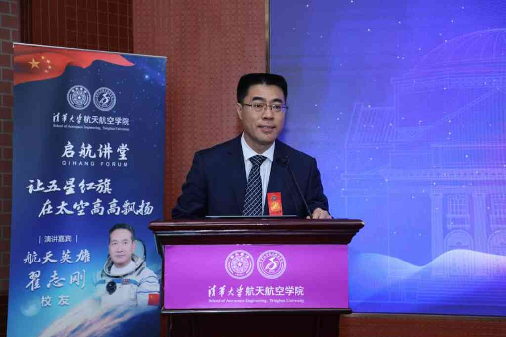 报告开始前,航院院长曹炳阳致开场辞,鼓励同学们以优秀校友为榜样,为实现航天强国的梦想努力奋斗。