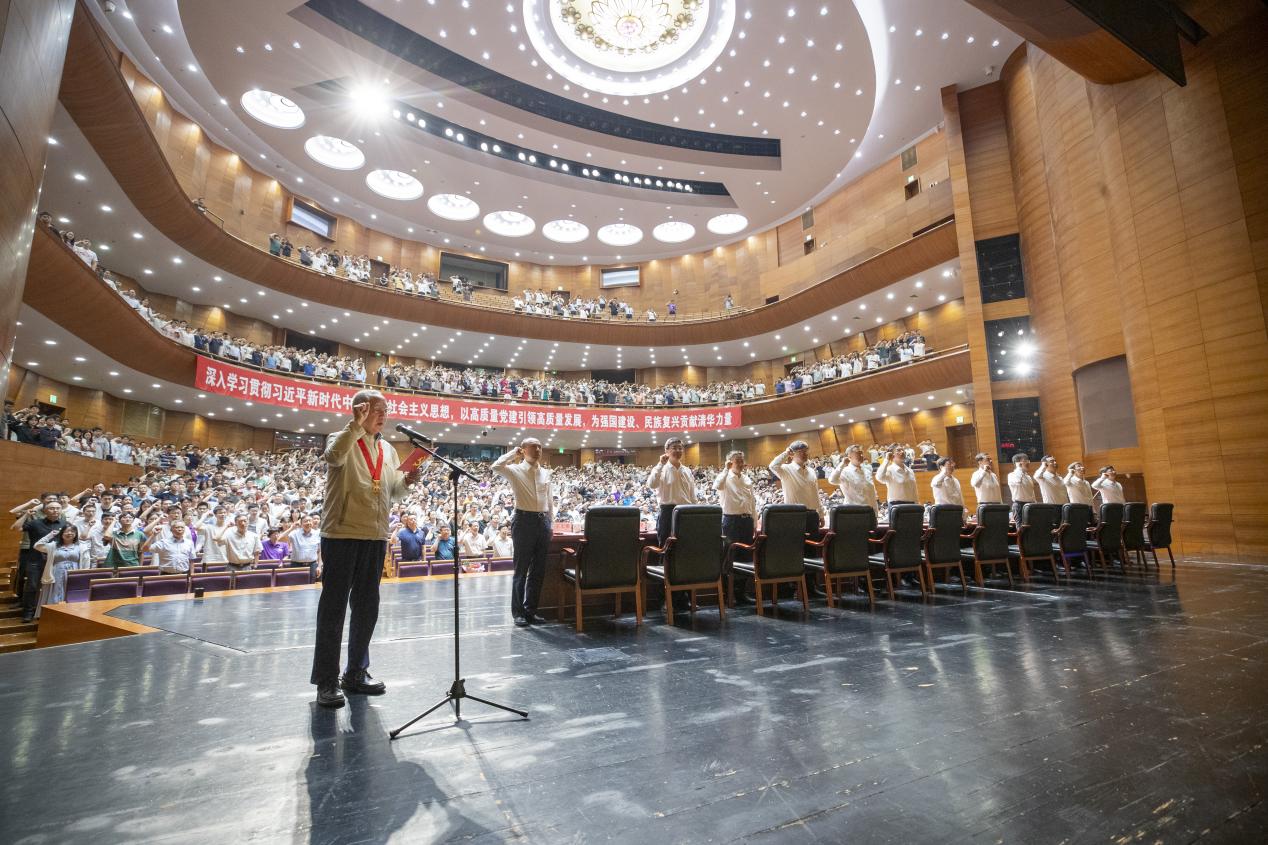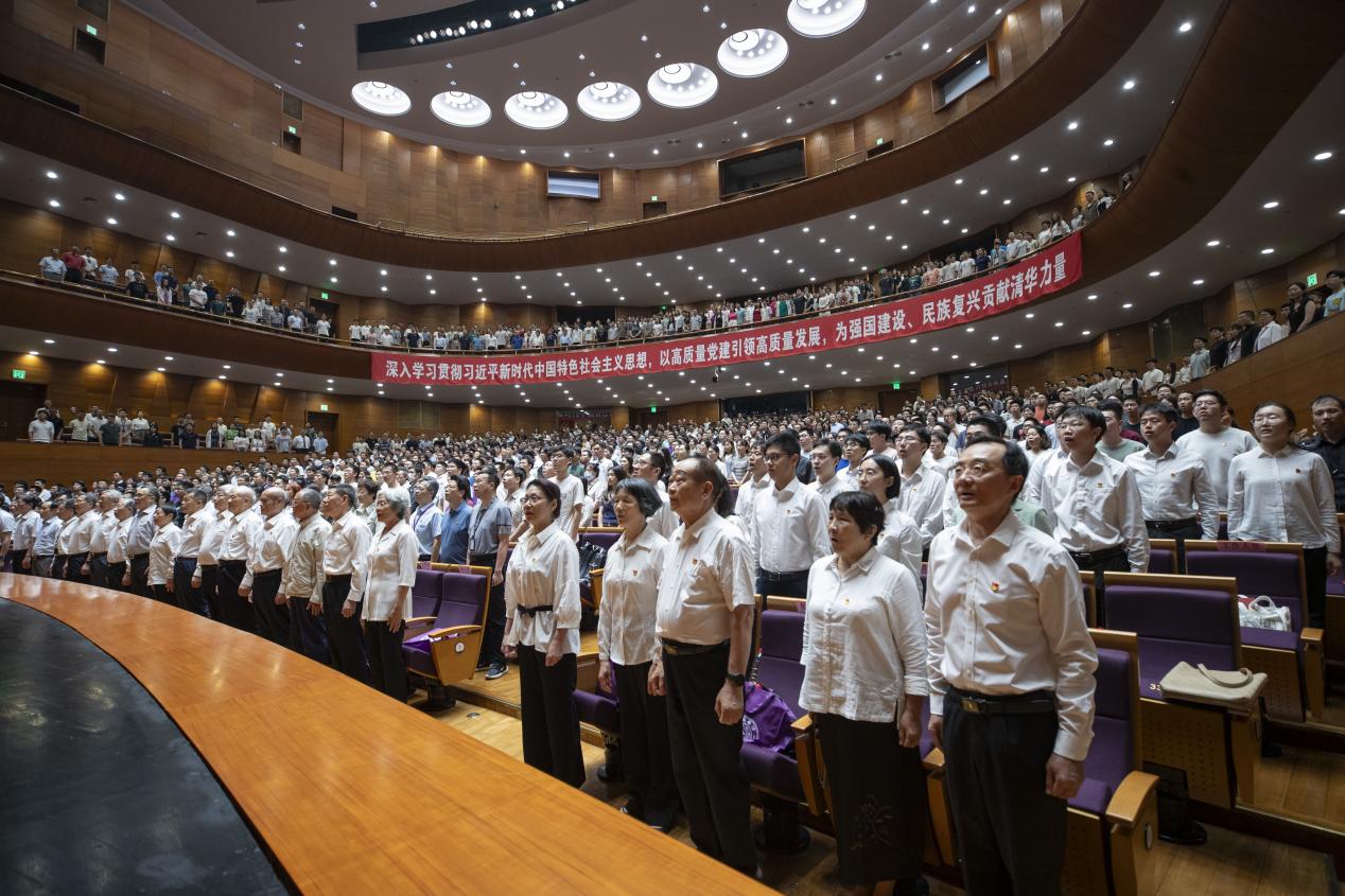 清华新闻网7月2日电(记者 曲田 徐子越 摄影 李派 杨艳宾)6月30日下午,beat365中文官方网站举行庆祝中国共产党成立103周年暨新党员宣誓大会。校党委书记邱勇在大会上发表题为“坚持严的标准、锤炼实的作风、维护铁的纪律 以高质量党建引领学校高质量发展”的讲话,校党委副书记、校长李路明主持会议。校领导向波涛、杨斌、过勇、郑力、赵罡、彭刚、曾嵘、姜培学、许庆红、王宏伟等出席会议。