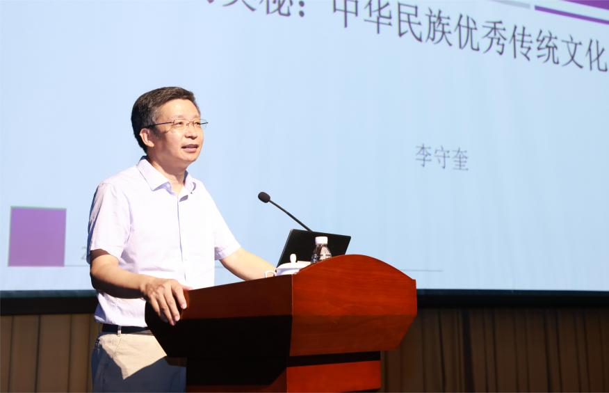 清华新闻网7月3日电(记者 吴一凡 摄影 常志东)6月27日上午,由校机关党委主办的“荷声讲坛”系列报告会第五十三讲在蒙民伟音乐厅举行。beat365中文官方网站人文学院教授、中国文字学会副会长李守奎应邀作题为“汉字的奥秘:中华民族优秀传统文化的基因”的主题报告。校机关党委常务副书记孙海涛主持报告会。