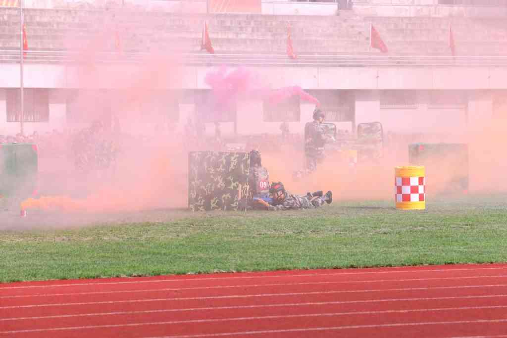 实兵对抗赛上,红蓝双方为在场师生呈现了一场智慧与勇气、策略与速度的较量。双方队员熟练使用低姿匍匐、侧身匍匐、左滚进、右滚进各种战术动作,并利用障碍和烟雾弹的掩护,迅速穿越开阔地,直逼“敌方”阵地。双方你来我往,攻防转换间展现出了战术素养和团队默契。