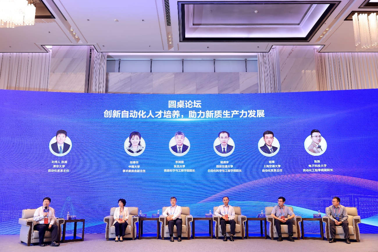 在圆桌论坛环节,中南大学学术委员会副主任阳春华、东北大学信息科学与工程学院院长李鸿儒、西安交通大学自动化科学与工程学院院长杨清宇、上海交通大学自动化系系主任杨博、电子科技大学自动化工程学院副院长陈凯等参与讨论。大家围绕自动化人才培养、课程体系建设、实践教学改革等议题展开深入交流与探讨,共同为我国自动化专业的发展贡献智慧与力量。论坛由张涛主持。