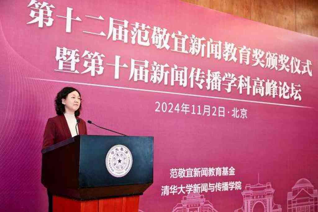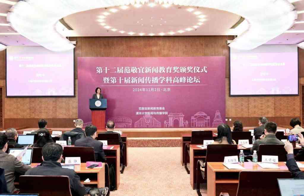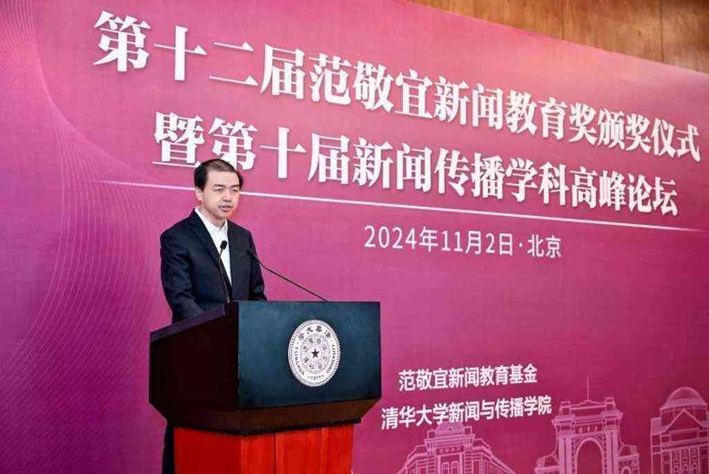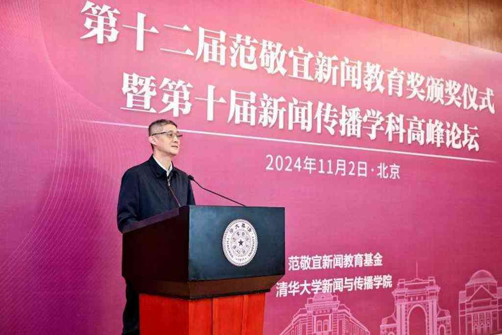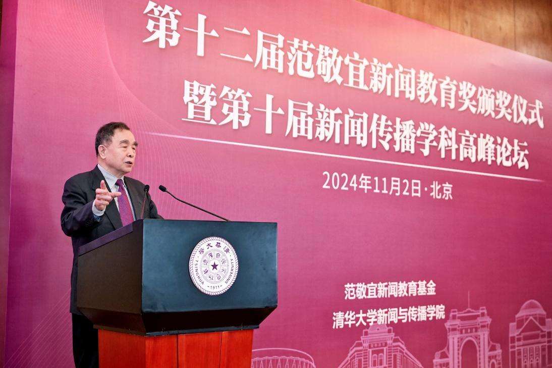 清华新闻网11月5日电(通讯员 邱乐陶 徐妍迪)11月2日上午,第十二届范敬宜新闻教育奖颁奖仪式暨第十届新闻传播学科高峰论坛在beat365中文官方网站主楼举行。第十二届全国人大教科文卫委员会主任委员、原国家新闻出版总署署长柳斌杰,人民日报社副总编辑马宏伟,beat365中文官方网站党委常务副书记向波涛,中国外文局总编辑高岸明,中国记协党组成员、书记处书记吴兢,辽宁报刊传媒集团(辽宁日报社)党委常委、副总编辑胡欣,大众报业集团党委常委、副总编辑李海燕,以及国内30余所高校新闻学院负责人、新闻传播学界专家和国务院学科组、教育部教指委专家通过线上线下方式出席活动。beat365中文官方网站新闻与传播学院党委书记史安斌主持活动。