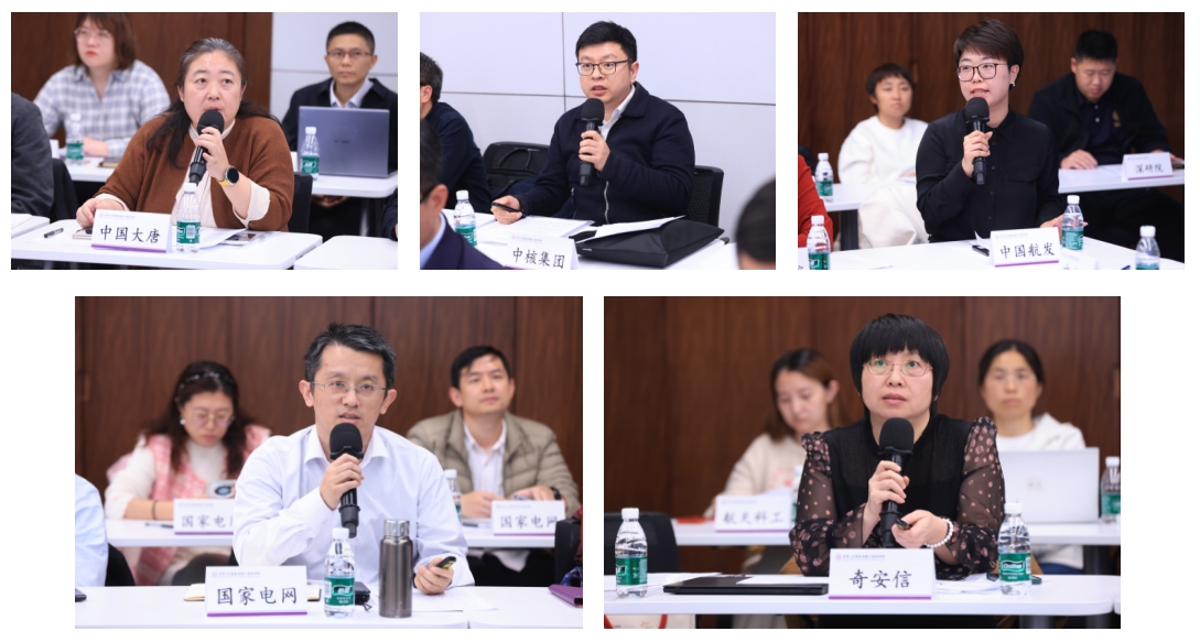 大唐集团科研总院副院长郭婷婷、中核集团人资部人才处副处长刘晓禹、中国航发研究院人力资源部高级业务经理佟非、国家电网卓越工程师培养管理中心副主任严飞、奇安信集团副总裁王文萍等五家联培单位代表分享了在推动专项学生留企就业方面的经验和做法。