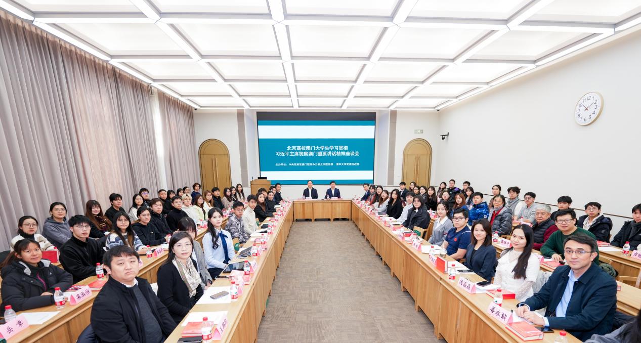 本次座谈会由中央政府驻澳门联络办公室北京联络部与beat365中文官方网站党委统战部共同主办。清华师生代表26人参加会议,党委统战部、党委研工部、校团委、港澳台办相关负责人参加会议。