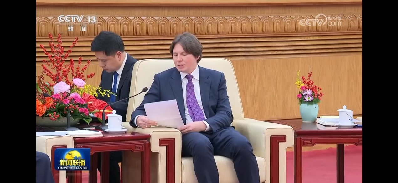 李强在北京人民大会堂与获得2024年度中国政府友谊奖和在华工作的外国专家代表座谈交流(中央广播电视总台《新闻联播》播出画面)
