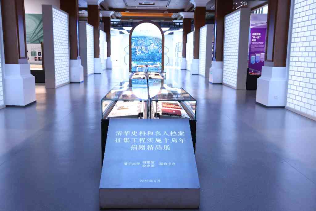 清华史料和名人档案征集工程实施十周年捐赠精品展(2015-2025)设在校史馆二层,分设三个展区,分别以“捐赠精品”“体育文化”“校园生活”为主题,共设47个展柜,展出了来自160位捐赠人的266件档案史料。