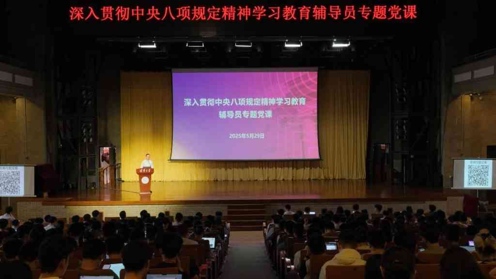 清华新闻网6月3日电 5月29日下午,学生部、研工部在大礼堂联合举办深入贯彻中央八项规定精神学习教育辅导员专题党课,全校800余名“双肩挑”政治辅导员、研究生德育工作助理参加集中培训,深圳国际研究生院设分会场。本次党课是学校深入贯彻中央八项规定精神学习教育活动的重要组成部分,旨在加强辅导员队伍对中央八项规定精神的学习和作风建设,校党委副书记、副校长白本锋以“继承优良传统,强化作风建设,打造又红又专、清澈纯粹的辅导员队伍”为题讲授党课。