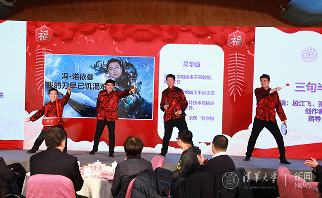 交流会上,来自科研院、先进院及文科处的教职工别出心裁地表演了一段民间传统曲艺“三句半”,将气氛引向高潮。