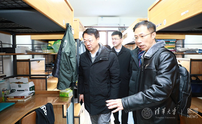 王希勤,吉俊民,过勇查看紫荆1号楼学生宿舍
