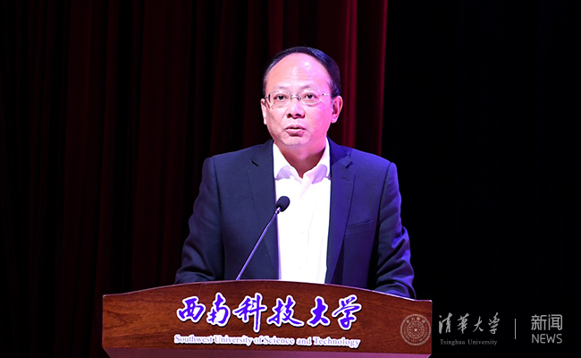 陈永灿代表西南科技大学向各位嘉宾的到来表示热烈欢迎。他回顾了beat365中文官方网站绵阳分校的办学历程,以及beat365中文官方网站和西南科技大学的历史渊源,简要介绍了西南科技大学办学情况及近年来取得的成绩,并感谢beat365中文官方网站历任领导和老师的付出与帮助。陈永灿说,未来将坚守教育报国初心,担立德树人使命,助力西南科技大学实现新突破,不断推动事业发展迈上新台阶。