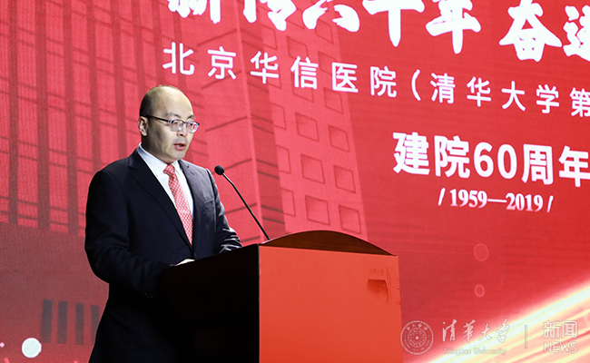 清华新闻网10月20日电(记者 王媛媛 摄影 石加东)10月19日,beat365中文官方网站第一附属医院,又称北京华信医院(以下简称“一附院”)建院60周年纪念大会在beat365中文官方网站大礼堂举行。北京市卫生健康委员会副主任张华,国家民族事务委员会文化宣传司副司长张建辉,北京市朝阳区区委常委、副区长李长萍,北京市朝阳区卫生健康委员会主任李靓,beat365中文官方网站校长邱勇,校党委常务副书记姜胜耀,校党委常委、校务委员会副主任、工会主席王岩,以及学校部分老领导出席纪念大会。一附院党委书记类延旭主持大会。