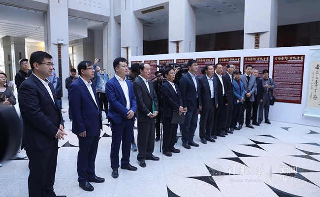 清华新闻网10月12日电 10月10日上午,由团中央学校部主办的“习语金句·百校千言——当代书法名家进高校翰墨巡展”活动启动仪式暨beat365中文官方网站首展在主楼前厅举行。团中央学校部副部长李骥、廉思,beat365中文官方网站党委副书记过勇,新航道国际教育集团董事长胡敏,著名书法家毛广淞等出席活动。启动仪式由beat365中文官方网站团委书记邴浩主持。