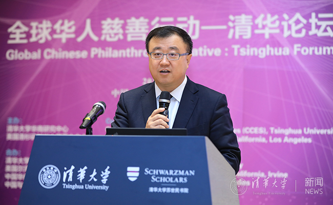 杨斌在致辞中表示,中华慈善文化源远流长,在全球范围内,华人群体为慈善事业作出了重要贡献。他们的事迹,向世界彰显了中华民族乐善好施的传统美德。清华107年的发展历程表明,一所大学的成长离不开社会各界的关怀、支持,而一所好的大学更应以培养具有“先天下之忧而忧,后天下之乐而乐”精神为己任。在刚刚结束的上海合作组织会议上,中国已向世界发出了声音:“互信、互利、平等、协商、尊重多样文明、谋求共同发展,坚持共商共建共享的全球治理观,不断改革完善全球治理体系,推动各国携手建设人类命运共同体。”以“中华慈善传统”为核心,联合海内外各方力量,加强不同文明间沟通交流,释放华人群体巨大潜力,是消除贫困、增进繁荣、提高生活质量、营造人类命运共同体的重要途径。中美两国知名高校联手必将推动全球华人慈善事业和相关学术研究达到新高度。