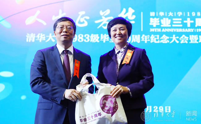 陈旭在致辞中代表学校欢迎各位校友回母校庆生。她说,1983级校友们在改革开放的时代大潮中建功立业,为祖国的繁荣昌盛、世界的文明进步付出了汗水和勤劳,感谢每一位校友在各自工作岗位上作出的杰出贡献,感谢大家为母校赢得声誉。陈旭简要介绍了30年来学校取得的成绩以及学校的发展情况并强调,30年来的发展变化日新月异,但清华始终坚持建设世界一流大学的目标,不断深化综合改革,扎实推进“双一流”建设,全球排名和世界声誉显著提升;始终坚持又红又专、全面发展的培养特色,校园氛围更加温馨,文体活动更加丰富,坚持体育锻炼的传统得到更好的传承。与此同时,清华变得更加人文,人文日新的精神绽放出崭新的光彩;更加协同发展,综合性学科布局基本完成;更加创新,深入推动科研体制机制改革;更加国际化,制定全球战略,为培养具备全球胜任力的拔尖人才和全球治理作出更多贡献。