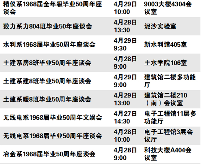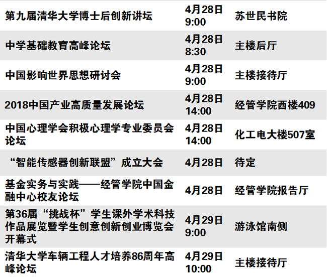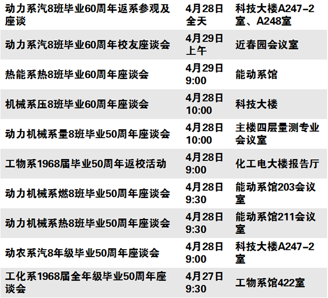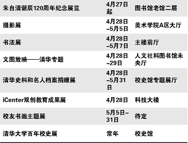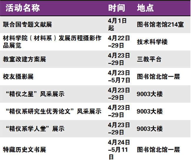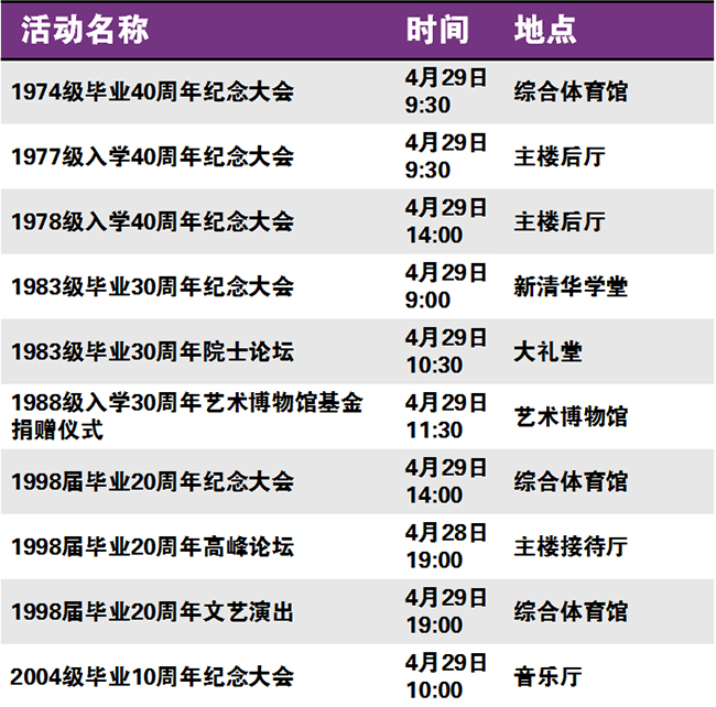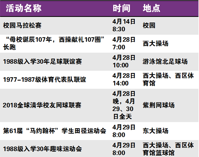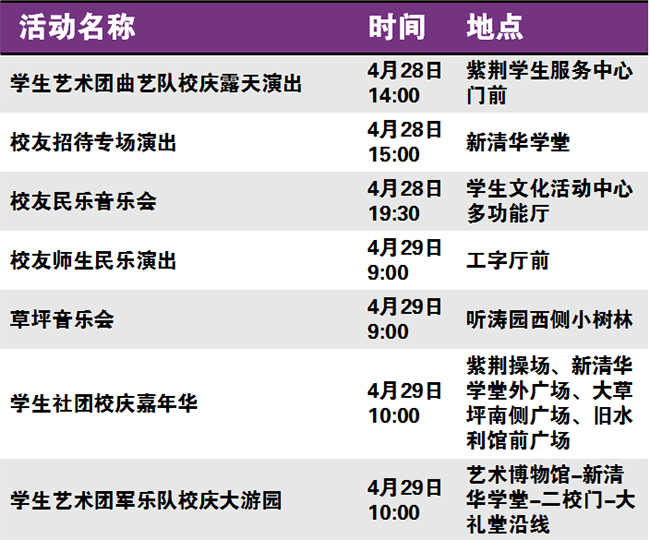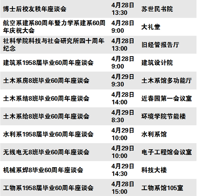 秩年、学术、体育、展览、校园开放、艺术、院系校友活动