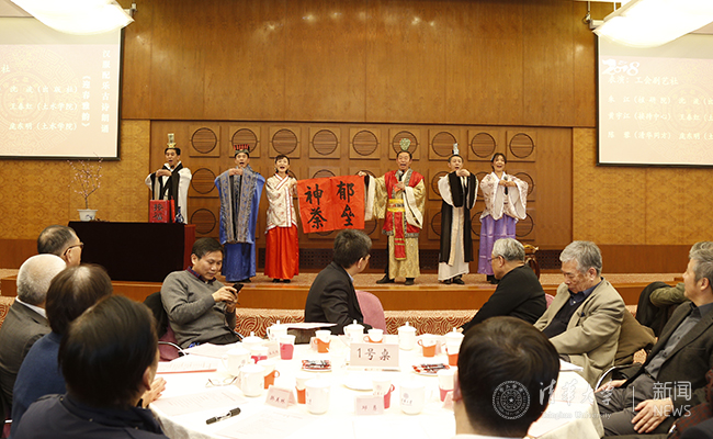 在茶话会现场,来自校工会剧艺社的汉服配乐古诗朗诵《迎春雅韵》、离退休教职工京剧队的京剧选段《贵妃醉酒》、学生艺术团交响乐队的弦乐四重奏《梁祝》、工会教师合唱团的《山楂树》《映山红》等节目纷纷登场,为全校师生送上诚挚的新年祝福。